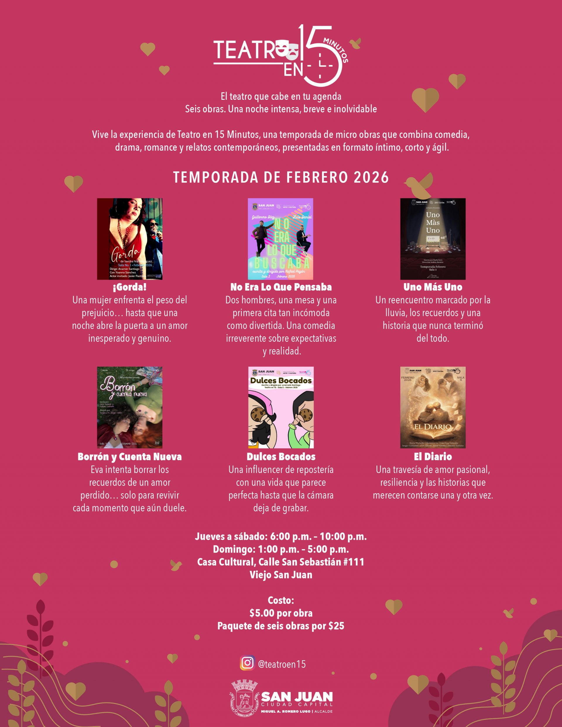 Teatro en 15 Temporada de Febrero 2026